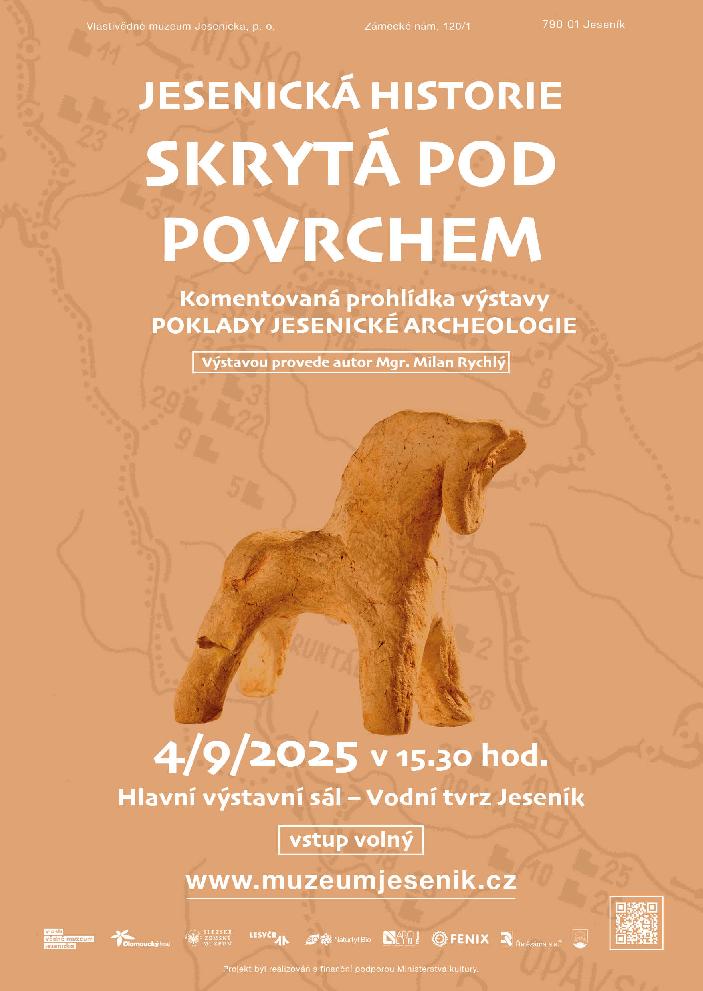 Vydejte se s námi na komentovanou prohlídku výstavy „Poklady jesenické archeologie“ a objevte příběhy ukryté pod povrchem Jesenicka. Autor výstavy, muzejní archeolog Mgr. Milan Rychlý, vás provede regionem, který byl po dlouhou dobu považován za archeologicky chudý – dnes však víme, že i horské a podhorské oblasti ukrývají pod zemí překvapivě bohatou minulost.