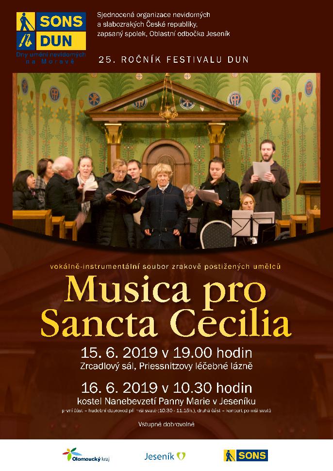Dvakrát během jednoho víkendu budete mít možnost zaposlouchat se do krásné hudby vokálně-instrumentálního souboru zrakově postižených umělců Musica pro Sancta Cecilia, který se zaměřuje především na interpretaci hudby z období gotiky, renesance a baroka.
