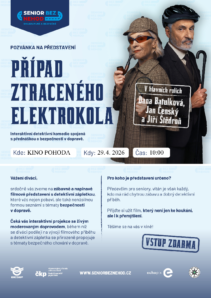 Srdečně vás zveme na zábavné a napínavé filmové představení s detektivní zápletkou, které vás nejen pobaví, ale také nenásilnou formou seznámí s tématy bezpečnosti v dopravě.
