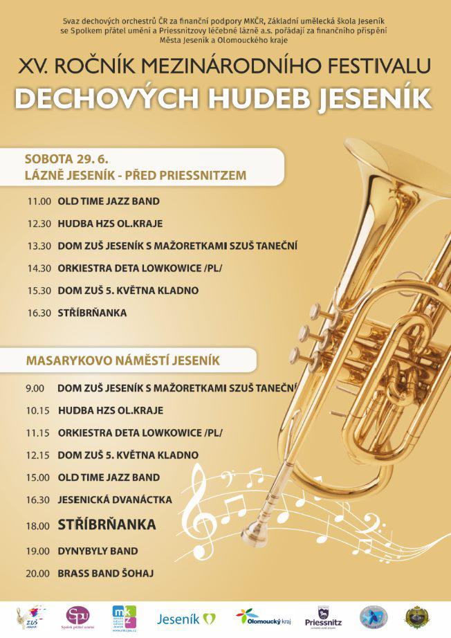 Každé dva roky se v Jeseníku koná Mezinárodní festival dechových hudeb, který se uskuteční již 15 rokem. Konat se bude v sobotu 29. června 2019 tradičně v lázních před Priessnitzem a na Masarykově náměstí. Hvězdou festivalu bude světoznámá kapela Stříbrňanka.